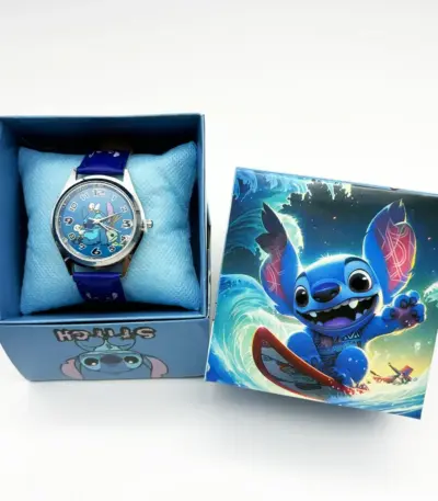 with box Disney Stitch Kids Watch Cartoon Character Stitch Cute PU Strap Analog Quartz Watch children’s watches birthday gifts