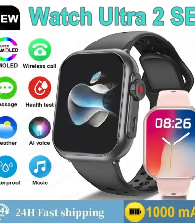 Watch Ultra 2 SE Men Women 1000mAh AMOLED Heart Rate 100+Sport Bluetooth Call GPS Track Waterproof Smart Watch For IOS Android