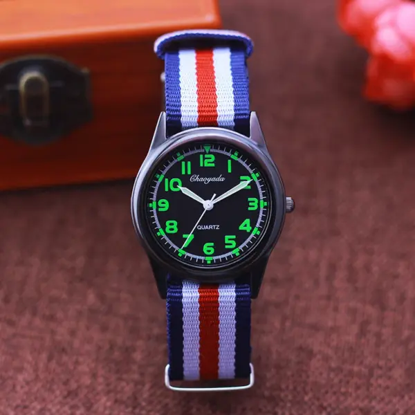 Chaoyada Woman Man Color Stripe Canvas Strap Wrist Watches Children Child Boys Girls Students Fluorescent Digital Test Watches