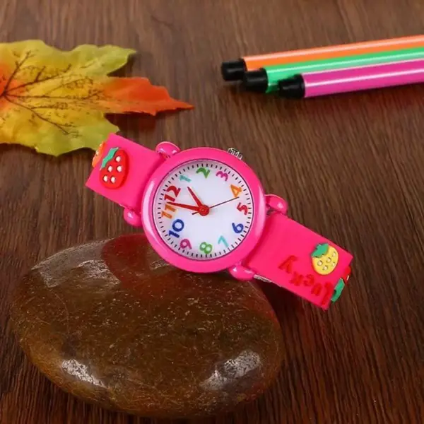 Children Cute 3D Strawberry Silicone Kids Watches for Boys Girls 3+ Soft Durable Band Safety Certified Perfect Gift Waterproof