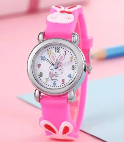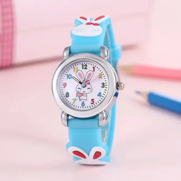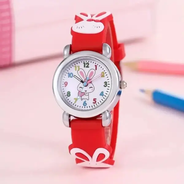 Children’s Cartoon Cute Bunny Quartz Silicone Watch Elementary School Girls Boys Children’s Watch 3D Silicone Strap