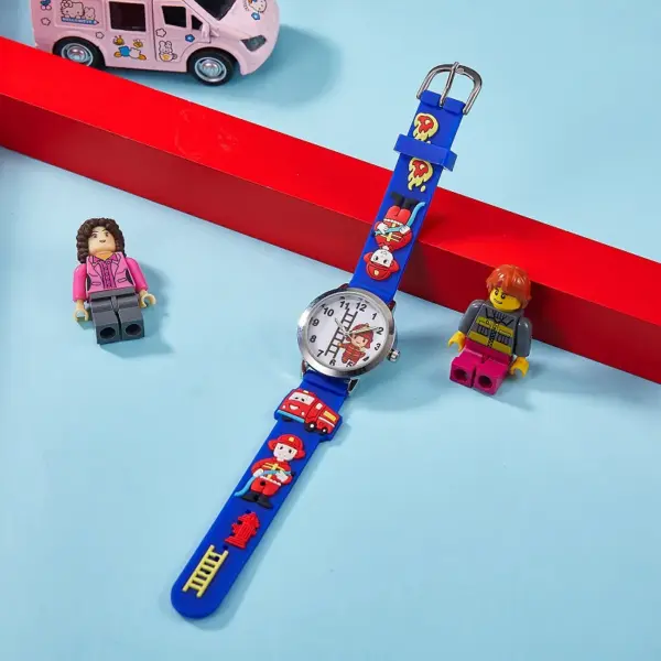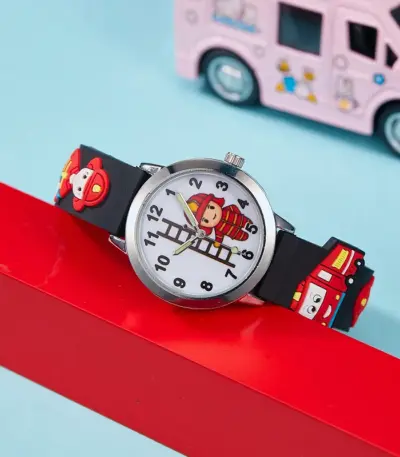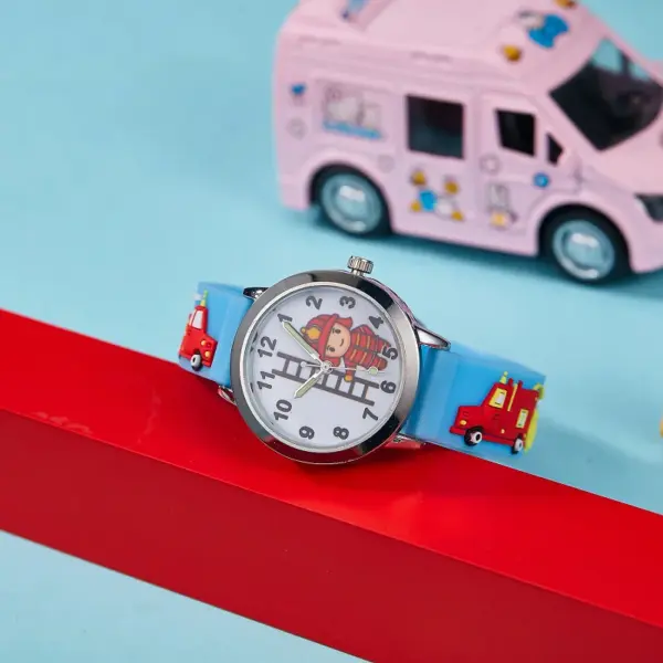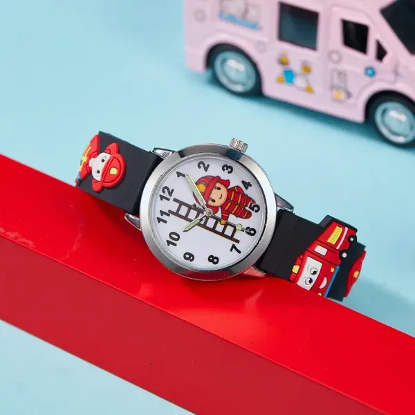 children’s 3D Cartoon Fire Truck Firefighter Kids Watches Soft Silicone Strap Durable for Boys Girls Aged 3-12 birthday Gifts