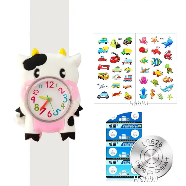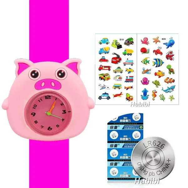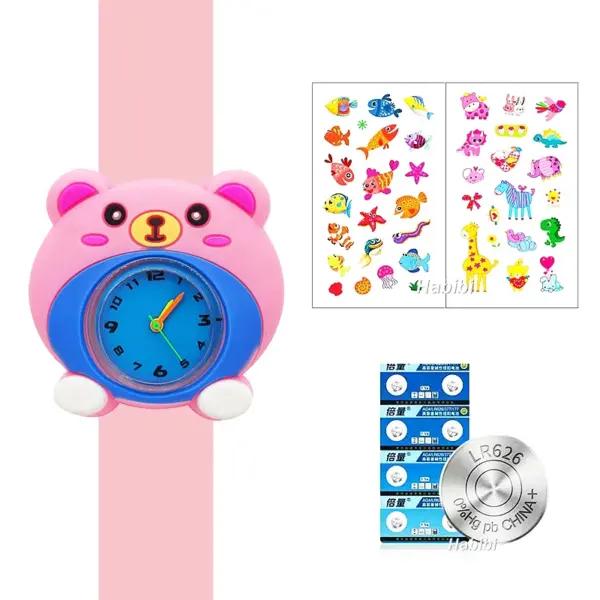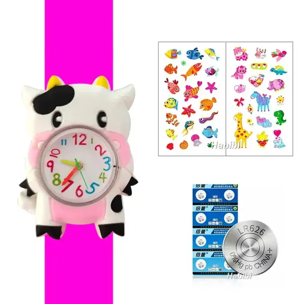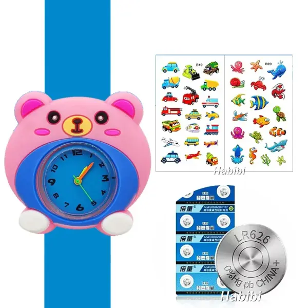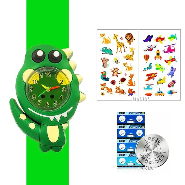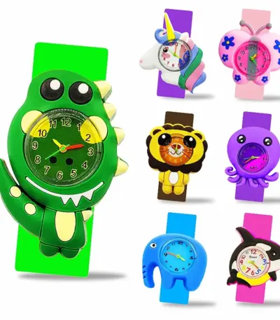 Cute Cartoon 3D Dinosaur Lion Elephant Butterfly Unicorn Children’s Watch Slap Snap on Bracelet Kids Student Watch Toy