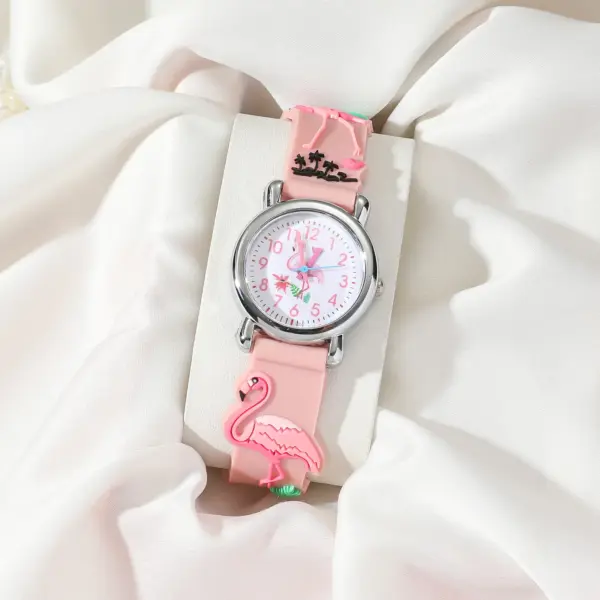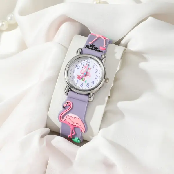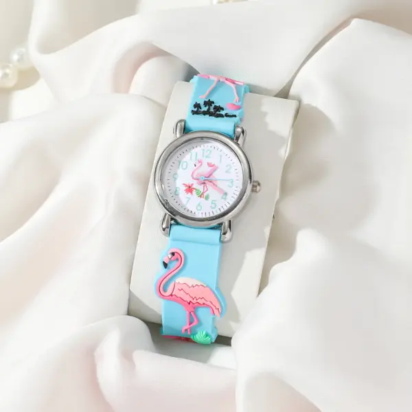 Cute Flamingo Pattern Children’s Cartoon Watch Cute Candy Color Silicone Strap Waterproof Kids Quartz Watches