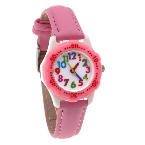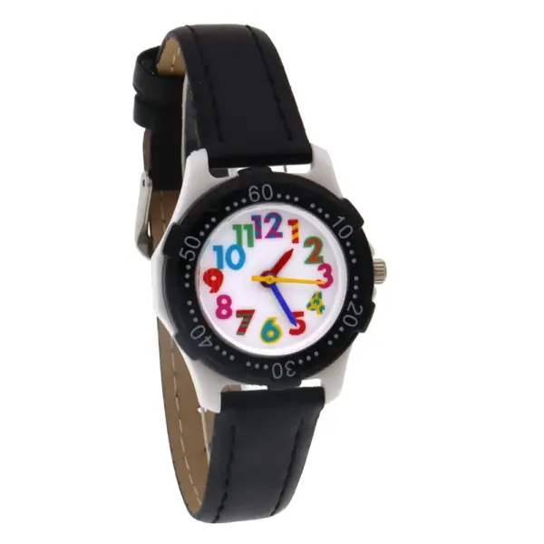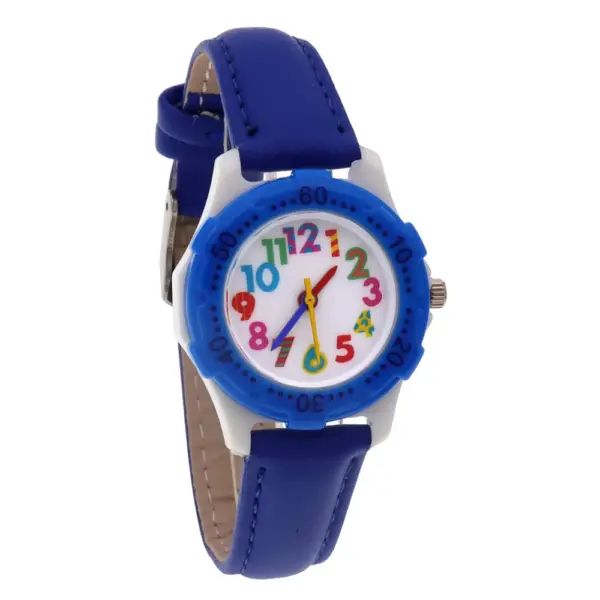 Cute Boys Girls Quartz Watch Kids Children’s Leather Strap Student Time Clock Wristwatch Colorful Number Dial birthday Gifts