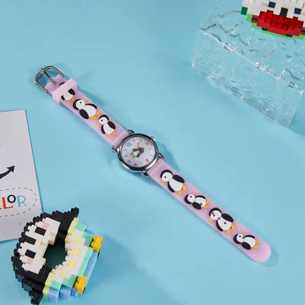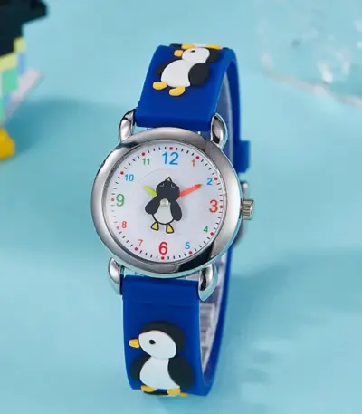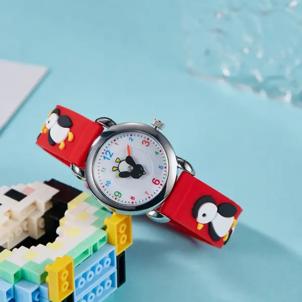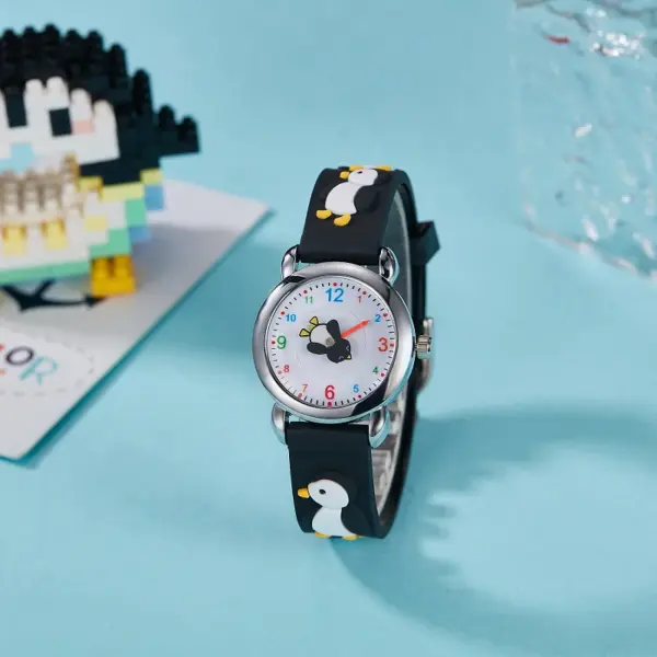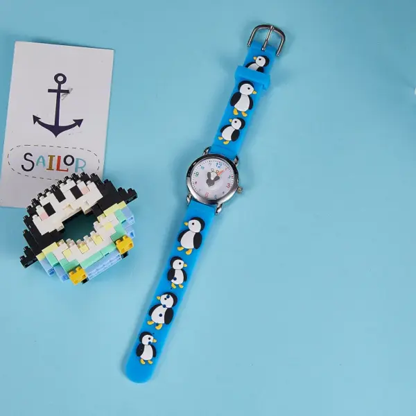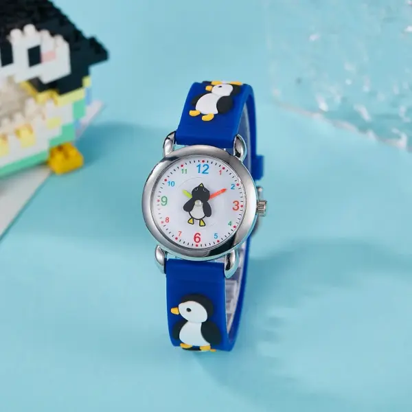Cute Kids Silicone Watch with 3D Penguin Design Rotate Animal Second Hand Extra Battery Safe for Ages 3+Children Boys Girls Gift