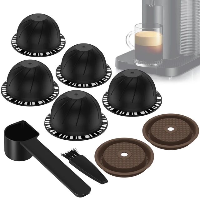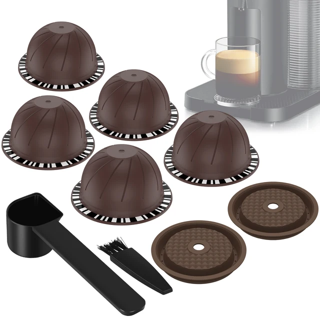 5 Pcs Reusable Coffee Capsules Set with 2 Silicone Lids Spoon and Brush Refillable Coffee Pods BPA Free Coffee Capsules for