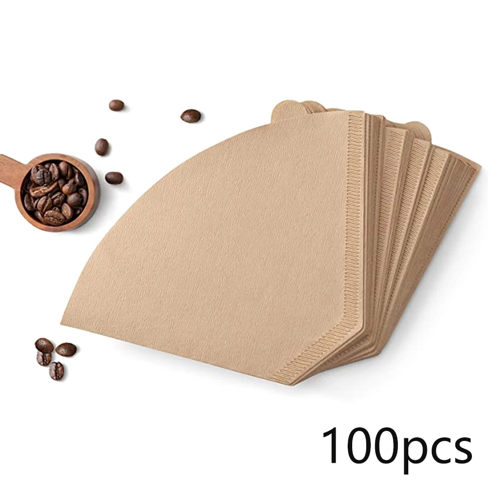 100Pcs Disposable Natural Unbleached Cone Coffee Filters Log Pulp Papers Filters