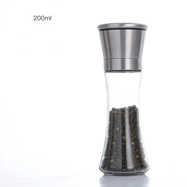 180/200ML Pepper Grinder Stainless Steel Glass Spice Bottle Salt Pepper Mill Manual Spice Grinder Mill Household Kitchen Gadgets