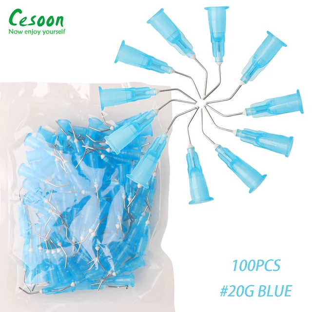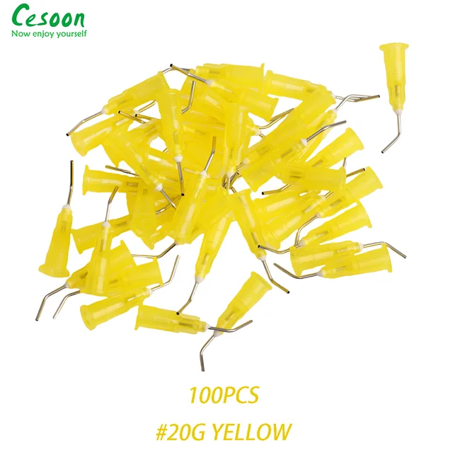100Pcs Dental Syringe Bent Needle Tips Delievery Flow Sealant Etchant Oral Composite Resin Acid Reagent Dentistry Tooth Cleaning