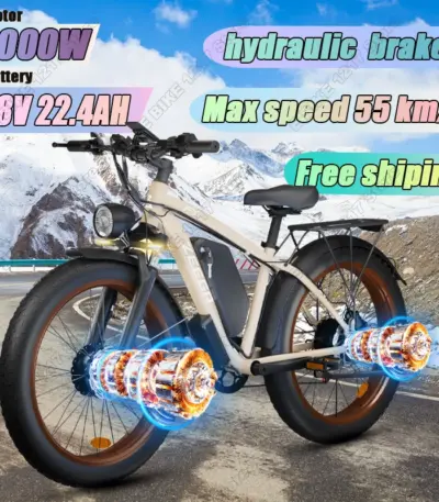 Electric bike F1 2000w Dual Motor 48V 22AH battery Adult Electric Bicycle 26inch tire Hydraulic brake Snow beach Mountain E bike