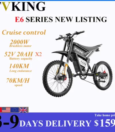 Electric bike Fvking with cruise control, 2000W waterproof motor, dual 52V batteries, 25″ off-road tires, 37MPH