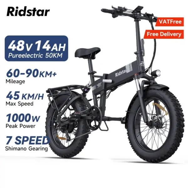 Electric Bike 1000W 48V14AH Lithium Battery City travel Folding Electric Bicycle 20*4 Inch Fat Tire Ebike for Adults