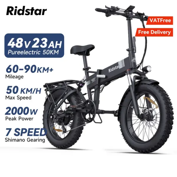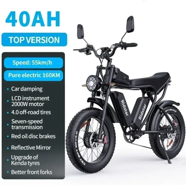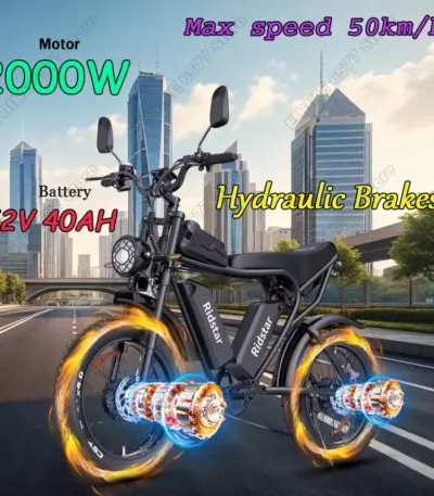 Electric Bicycle Ridstar Q20 2000W 52V 40AH Dual Motor Battery Electric Bike 26*4.0inch Fat Tire Mountain Snow Off-road E-bike