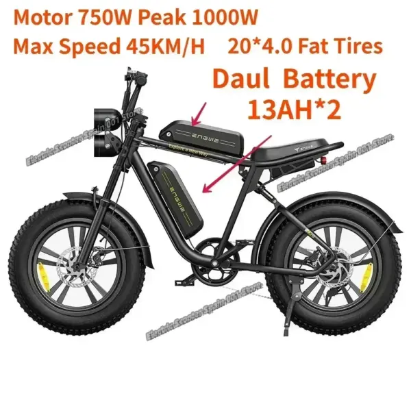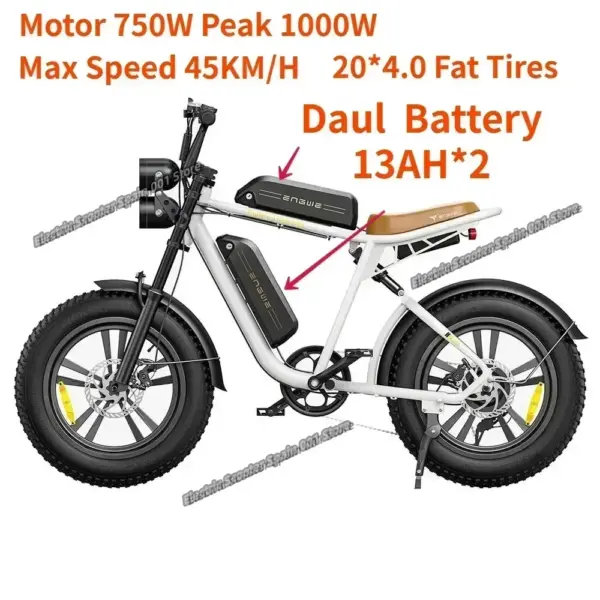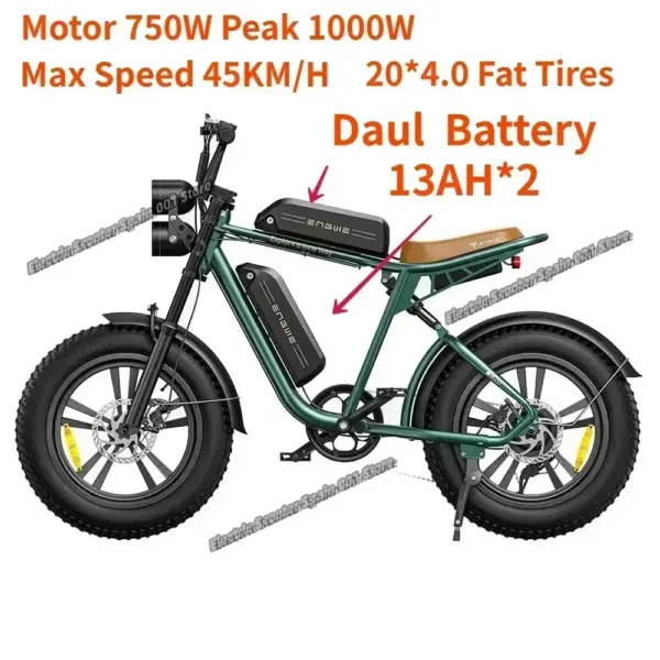 ENGWE M20 Electric Bike 750W Powerful Motor 48V26Ah Dual Battery Electric Bicycle 20*4.0 Fat Tire Mountain Max Speed45KM/H Ebike