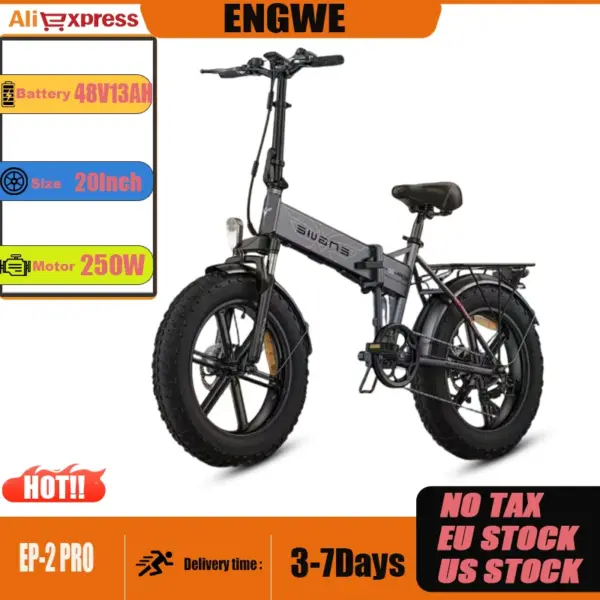 Engwe EP-2 Boost Folding Electric Bike 250W Motor 48V13Ah Battery E-Bike 20 Inch Fat Tire Adult City commuting Electric Bicycle