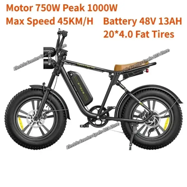 Eletric bike JANSNO X70 750W Motor 48V 34Ah Dual Lithium battery Electric bicycle 20inch fat tire Adult Snow Mountain City Ebike