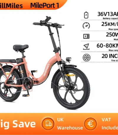 HillMiles MilePort 1 adult E-bike, 250W E-Mountain bike, 36V 13Ah battery, 20-inch fat tire city ebike,Electric Bike