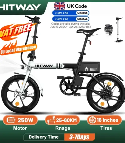 HITWAY BK35 Folding Electric Bike, 16 inch E Bike 250W City E-Bike Max.Range 25-60KM