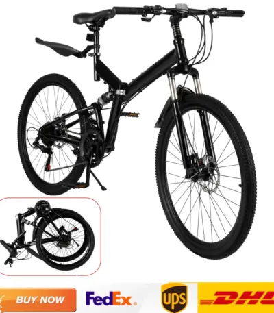 Adults Folding Mountain Bike | 26″ 21-Speed Dual Disc Brakes & Oil Spring Fork | 150kg Load Capacity, High-Carbon Steel Frame