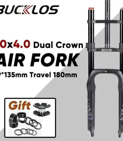 BUCKLOS Dual Crown 20Inch Ebike Fat Bike Fork 20*4.0 E-bike Air Suspension Fork 180mm Travel Beach Snow Bike Fork Bicycle Parts