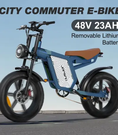 City Commuter Electric Bike, 48V 23AH Removable Lithium Battery, 20-inch Fat Tyres, 7-Speed with Smart LCD Display