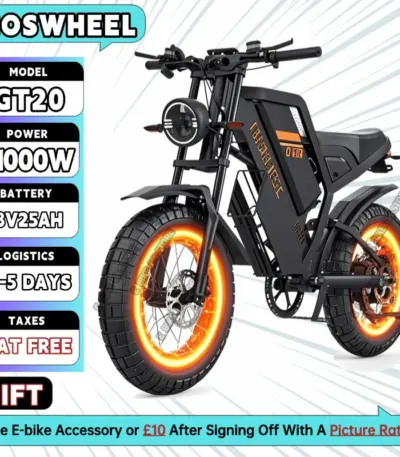 Coswheel Electric bike GT20 48V 25AH Removable battery Max Range 87 Miles Fat Tire Mountain Bike Adult Off-Road bicycle UK Stock