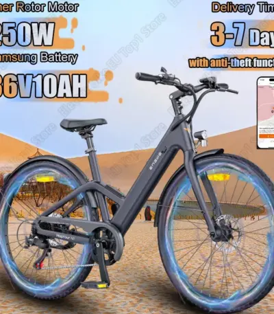 E-bike HD-C6 250W Brushless Motor 36V13AH Lithium Battery Electric Bicycle Adult Woman City Travel 20*3-inch Tire Electric Bike