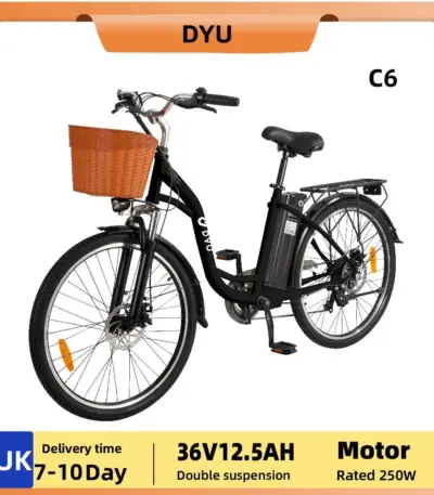 DYU C6 Electric Bike for Adults 250W Motor City Ebike 36V12.5AH Battery Electric Bike 26 Inch Tire Commuter Electric Bike