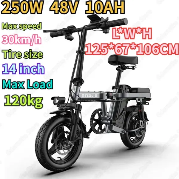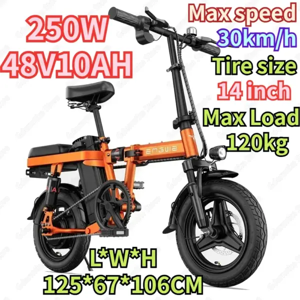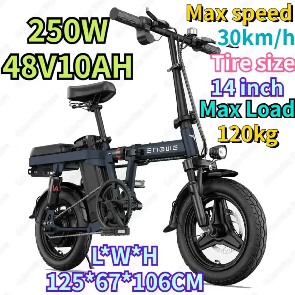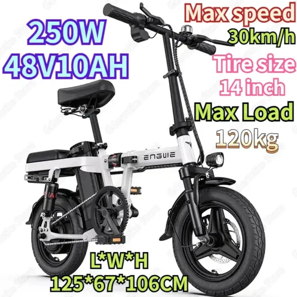 EBike 250W Motor 48V10AH Lithium Battery Adult Urban Mobility Electric Bicycle 14-inch Tire Life 80KM Mini Folding Electric Bike
