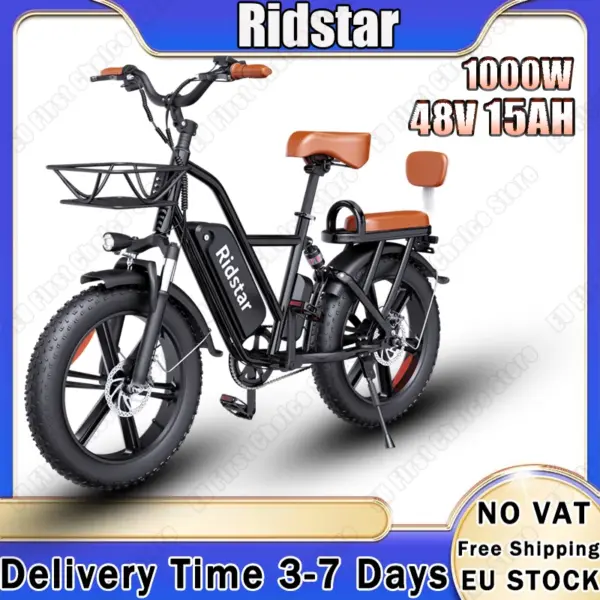Ebike Ridstar 1000W Powerful Motor 48V15AH Lithium Battery Electric Bike 20*4inch Off-road All-terrain Fat Tire Electric Bicycle