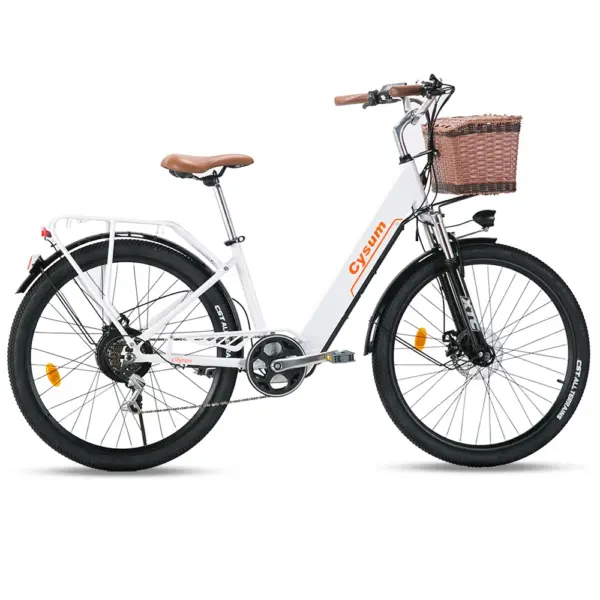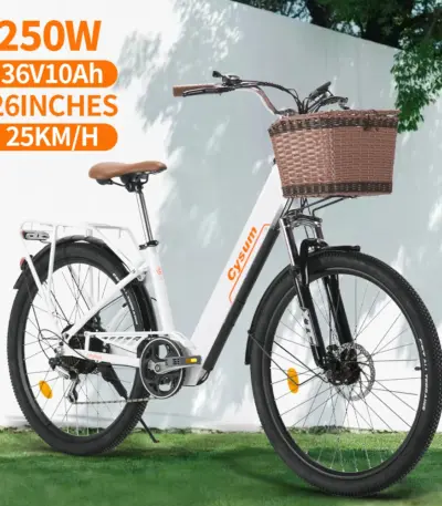 Ebike Electric Bicycle 26″ 250W Motor City Ebike Pedelec with Bicycle Basket Cup Holder Entertainment Women Cycling Electric