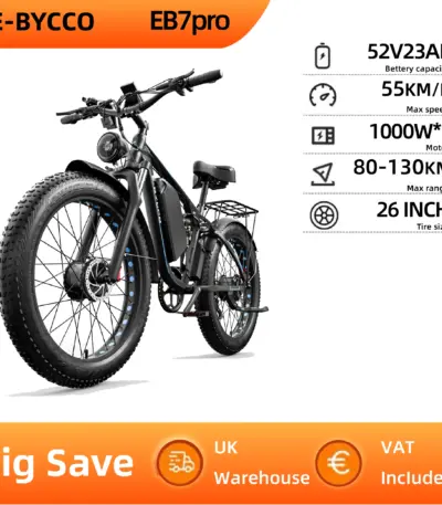 E-BYCCO EB7 PRO adult E-bike, 1000W*2 motor E-Mountain bike, 52V23Ah battery, 26-inch Fat Tire city ebike,Electric Bike