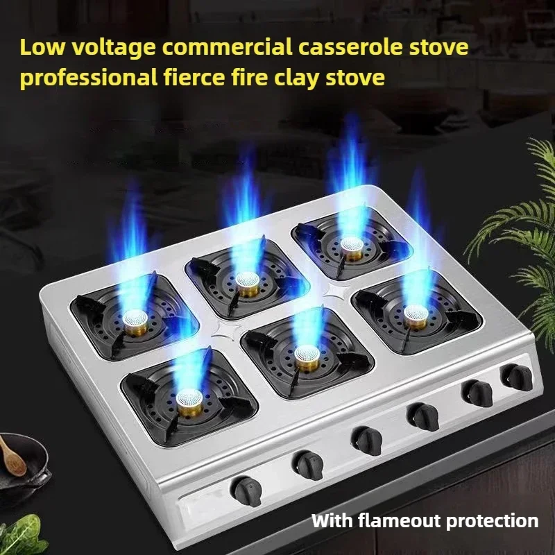 Desktop 3/4/6/8 Burner Gas Stove Commercial Clay Pot Stove Liquefied Gas Natural Gas Stainless Steel Cooktop Flameout Protection
