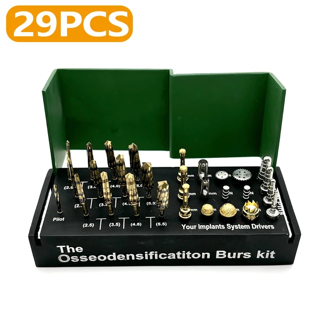 29Pcs Dental Implant Drills Osseodensification Burs Kit Maxillary Sinus Lift Drills Kit for Surgical Dentist Lab Instrument Tool