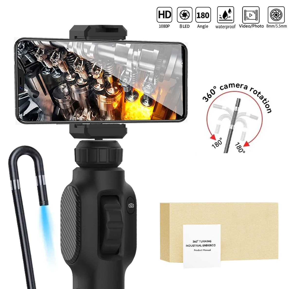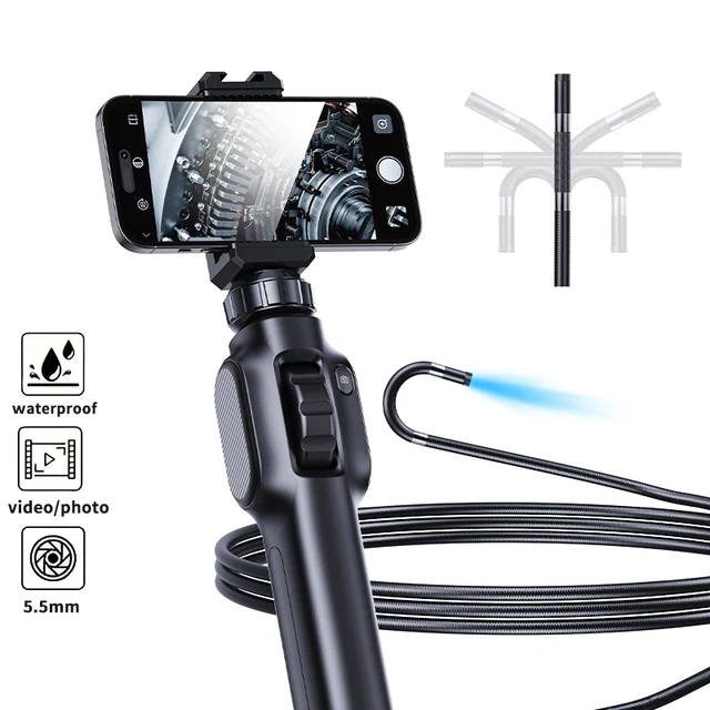 360° Articulated Endoscope, 5.5mm Joystick Articulated Endoscope Camera with Steerable Probe, Compatible with iPhone and Android