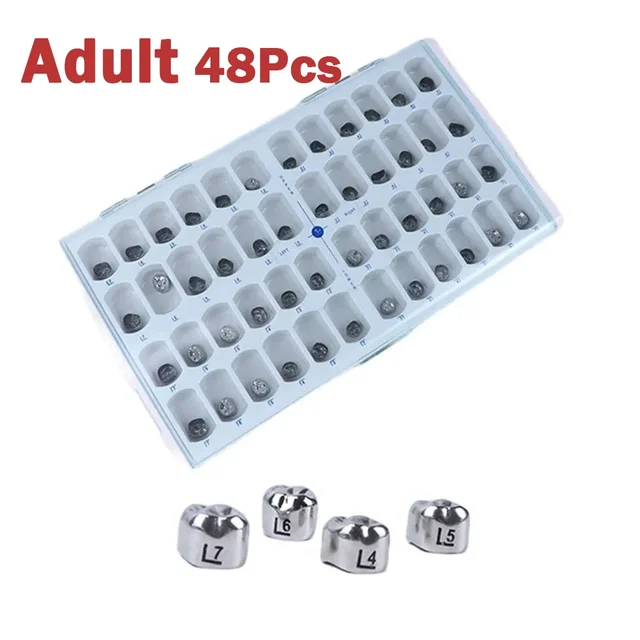 48PCS/96PCS Dental Kids Crowns Primary Molar Teeth Crown Stainless Steel Orthodontic Deciduous Crown Preformed Temporary Crown
