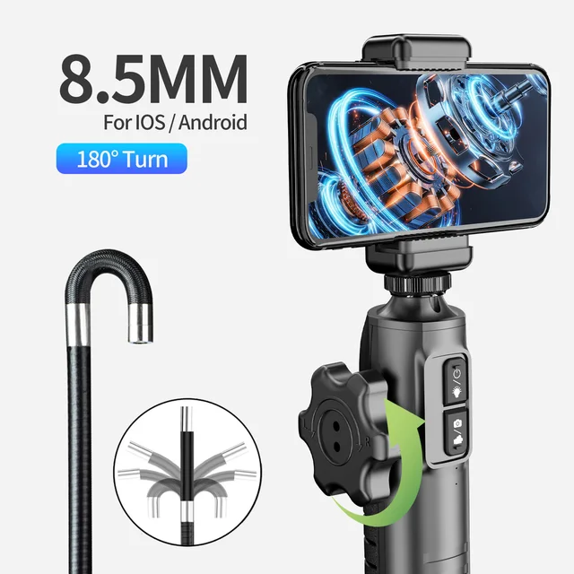 5.5MM/8.5MM 2.0MP 180 Degree Steering Industrial Borescope Endoscope Cars Inspection Camera With 6 LED for iPhone Android