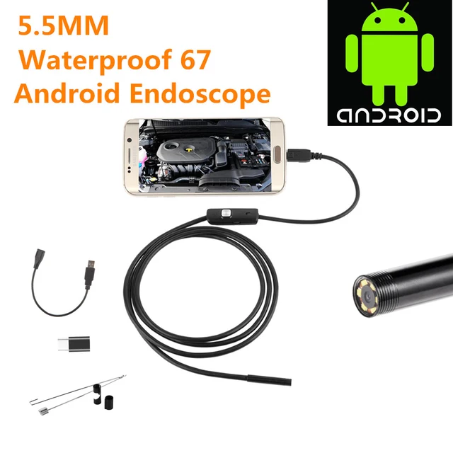 5.5mm HD Endoscope Camera Waterproof Micro 6 LED IP67 Endoscope for Cars Industrial Smartphone Mini Camera Endoscope USB Type C