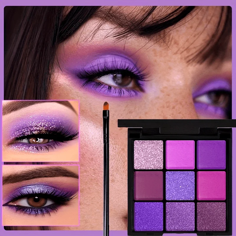 9 Color Purple Eye Shadow Palette Matte Pearlescent Eyeshadow Makeup for Women Glitter Shimmer Korean Cosmetics