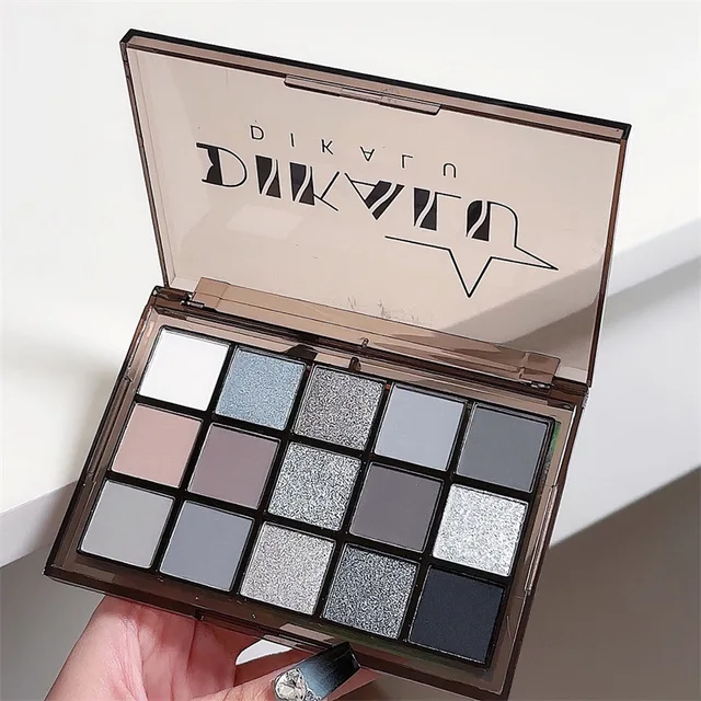15Colors Cool Toned Eyeshadow Palette Black Smokey Eye Glitter Eyeshadow Shadow Eye Pigments Matte Palette Palett Palette S K4W5
