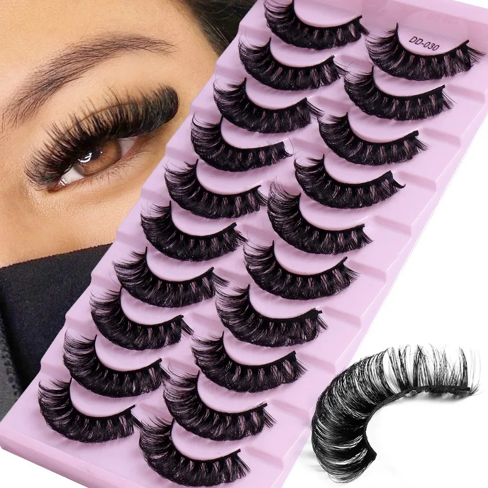 10 Pairs Russian Strip Lashes DD Curl Lashes 3D Eyelashes Reusable Fluffy False Lashes Russian Extensions