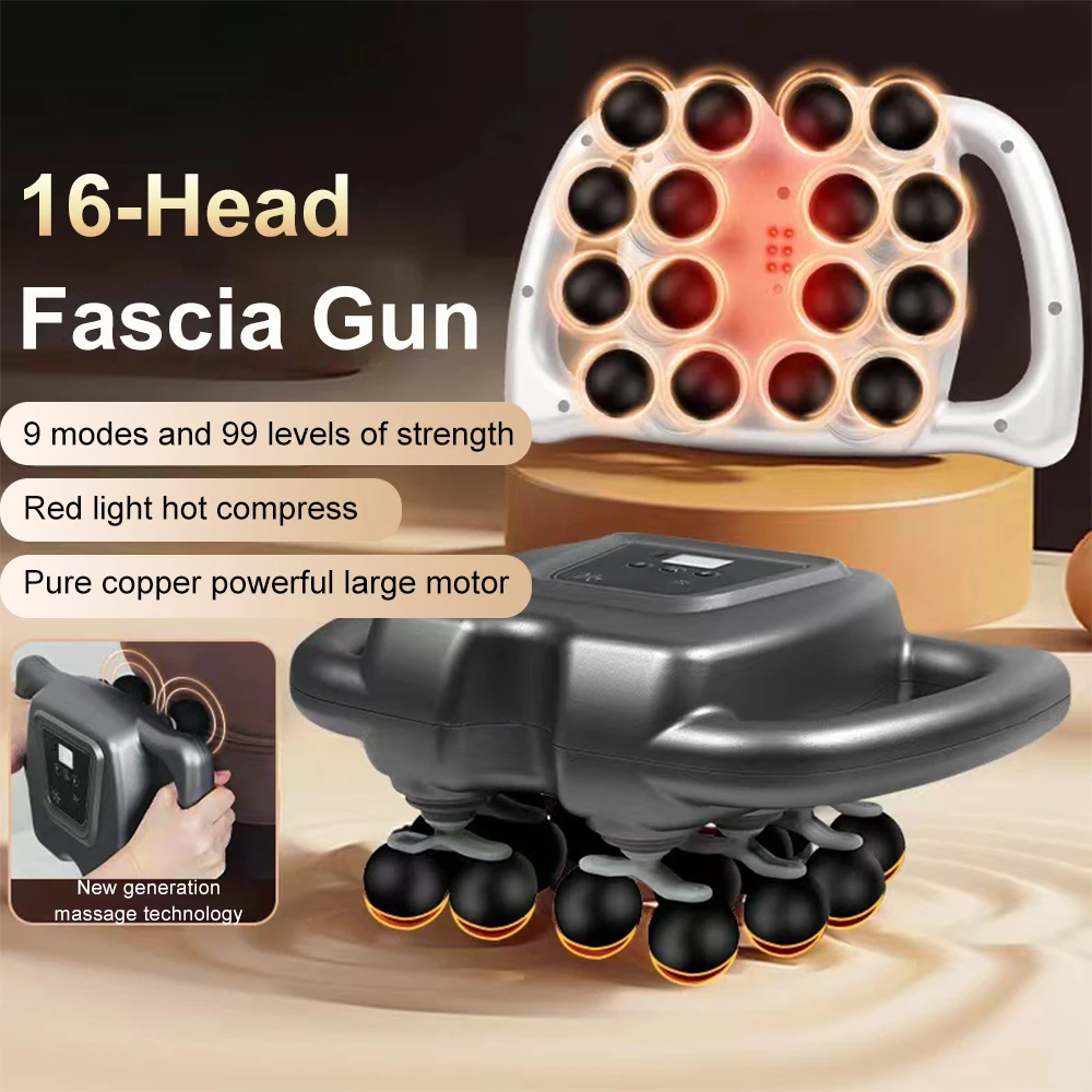 Fascia Gun 16-Head Muscle Massage Gun Professional Body Leg Back Shoulder Waist Fascia Gun High Frequency Vibration Massager Gun