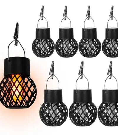 1-6Pcs LED Outdoor Flame Effect Hanging Lantern Out Waterproof Garden Decoration Lamp Solar Fairy Light For Patio Garden Yard