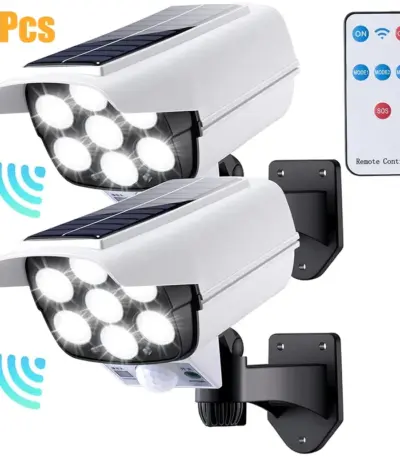 1-2Pack 77LED Solar Motion Sensor LED Light Outdoor Dummy Camera Wireless Security Flood Light Waterproof Lamp For Home Garden
