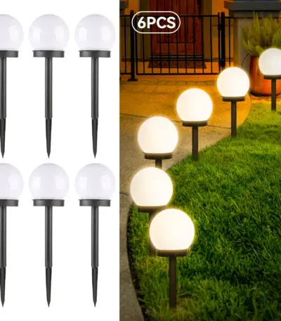 6PCS Solar Garden LED Ball Lights Outdoor Waterproof Night Lamps For Path Yard Lawn Road Courtyard Ground Lighting Decoration
