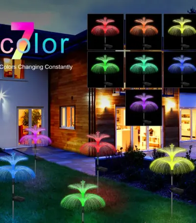 7 Color Changing Solar Outdoor Light Waterproof Double Jellyfish Star Solar Flowers Lamp Yard Garden Pathways Holiday Decor