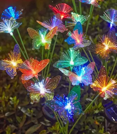 6/8 Heads Butterfly Fiber Optic Flower LED Solar Lights Outdoor Wedding Party Decor Solar Garden Lawn Lamp for Yard Patio Decor
