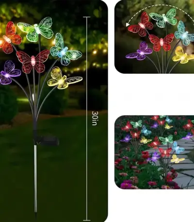 Garden Solar Butterfly Lights Outdoor 6LED Decor Light Waterproof Stake Lights For Yard Pathway Patio