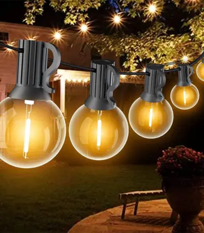 G40 Solar String Lights Outdoor 8Mode Solar Globe String Bulb Patio Hanging Lights Waterproof Garden Pergola Bistro Deck Decor